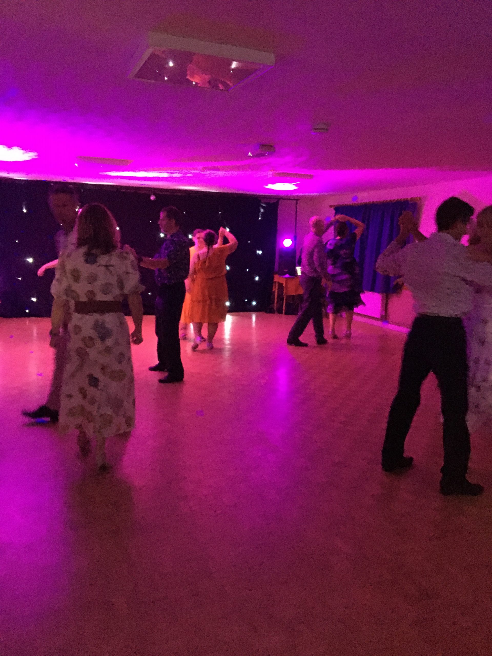 On Friday 4th July we held our Summer Dance and it was enjoyed by all! We kicked off the evening with lots of dancing in the sparkly dance hall and then had a fabulous buffet – thank you to everyone for providing such a great spread! During the buffet we held a summer quiz – well done to Pop Goes The Weasel who came first winning a box of chocolates. More dancing followed, during which we played Killer Tango – you have to see it to believe it – with Steve and Esme winning a bottle of wine after seeing off the opposition! Photos of the evening follow:-